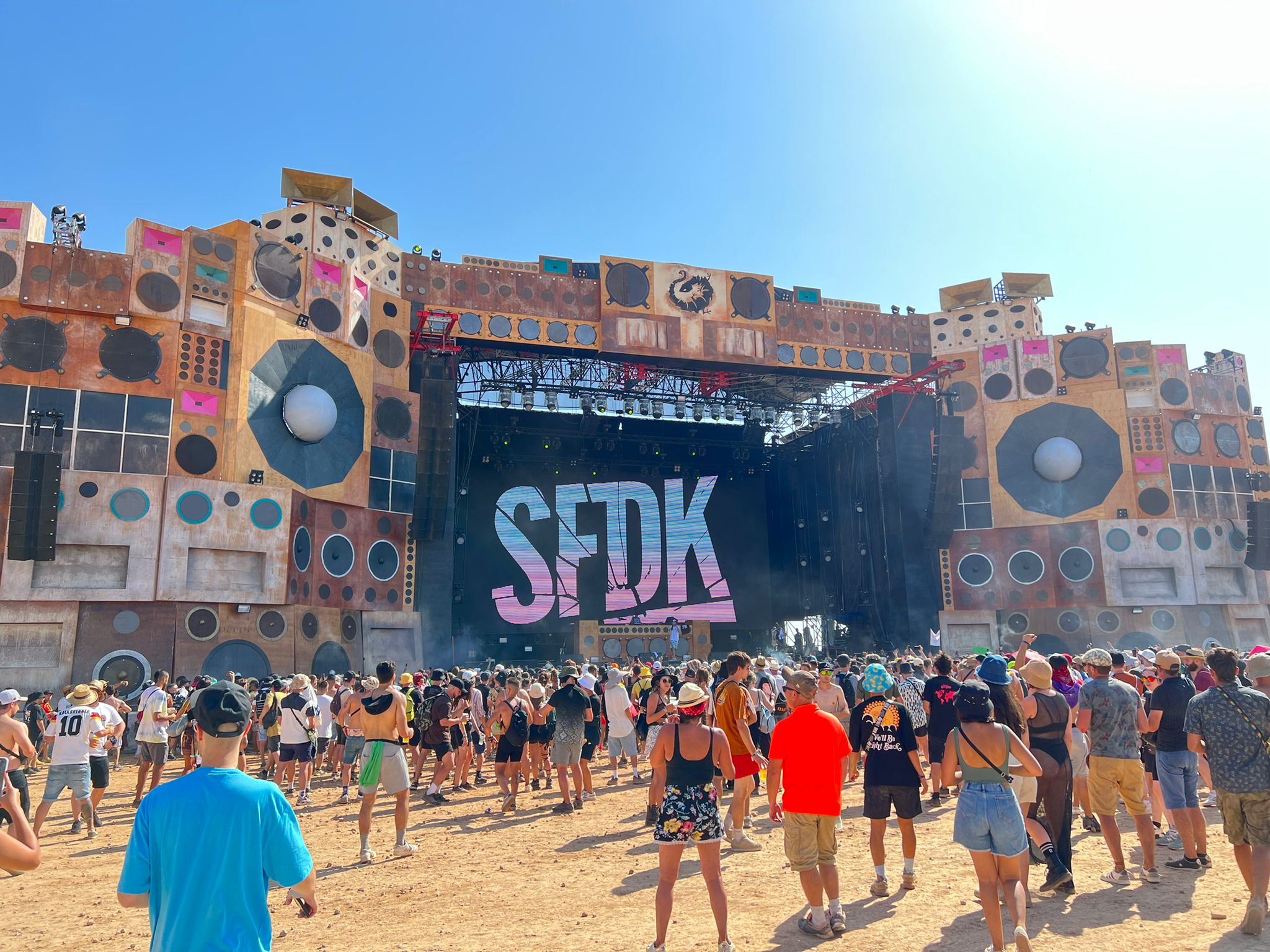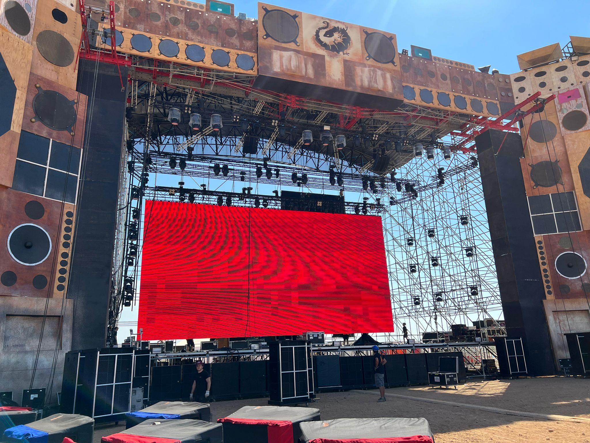 El equipo de Eikonos lo ha vivido completando el stage «Sound System Temple» con una pantalla LED de 6mm de 18×9 y la proyección de los mappings con 4 proyectores de 50k y el mapping de “El Row” con 3 proyectores de 50k.